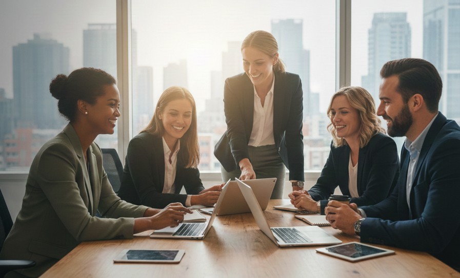"Corporate language specialist with CELTA certification teaching negotiation phrases to professionals"